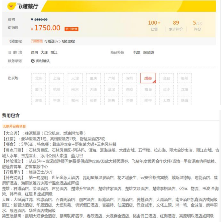 该旅游产品广告链接:含往返机票丨住五星酒店云南旅游昆明大理丽江6天5晚跟团西双版纳