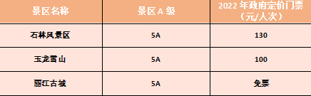 根据云南省《2026年旅行社云南旅游产品参考成本消费提示》,结合政府指导价及市场调节价A级景区名单计算得出: