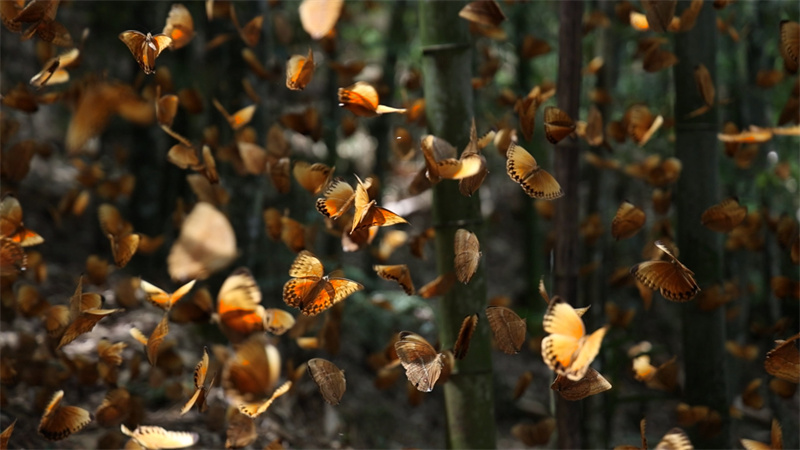 云南省红河州金平县中国·红河蝴蝶谷博物馆馆长、蝴蝶观察员杨镇文:经过我们对林区进行监测,预计今年蝴蝶爆发的情况是非常好的,尤其是营盘山这个点,虫口密度非常大,是近10年以来数量最多的一次,预计单点爆发量就可以达到上亿只。