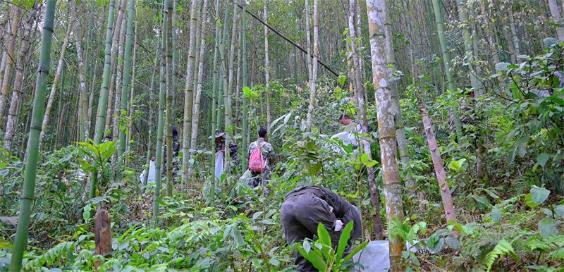 (4月7日,云南金平马鞍底乡组织护林员对蝴蝶幼虫进行保护性迁移 阮纯 摄)