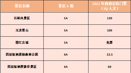 根据云南省《2026年旅行社云南旅游产品参考成本消费提示》,结合政府指导价及市场调节价A级景区名单计算得出: