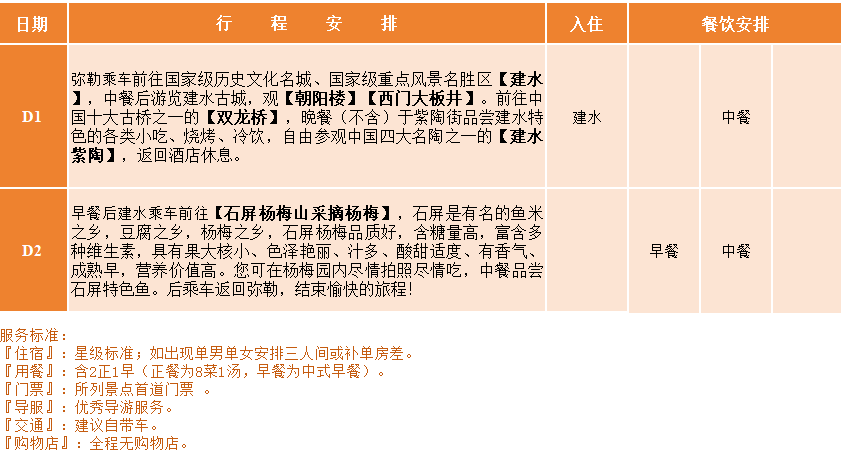 跟随这条线路,你可以去往国家级历史文化名城建水,游千年临安古城,一览【朝阳楼】【文庙】【朱家花园】【西门大板井】等景区景点,在【紫陶街】感受建水夜生活,品味地道的建水小吃。