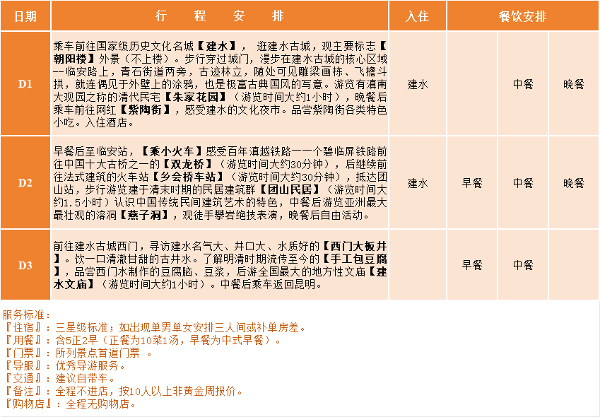 在这条线路里,可以深度游建水【文庙】【朝阳楼】【朱家花园】【燕子洞】等知名景区,还能感受建水小调等歌舞演出。