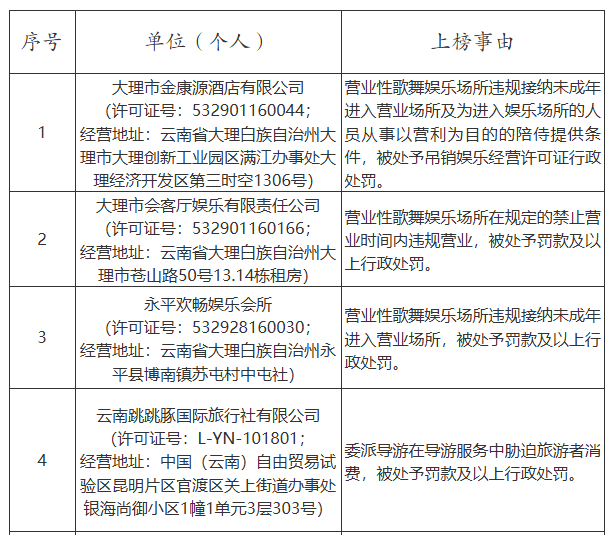 主要上榜理由:未经许可经营旅行社业务,违反了《中华人民共和国旅游法》第二十八条之规定,依据《中华人民共和国旅游法》第九十五条第一款之规定进行行政处罚((玉红)文综罚字〔2025〕02号)。