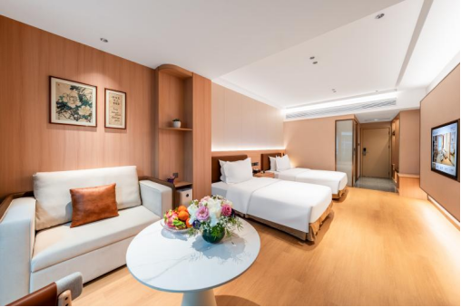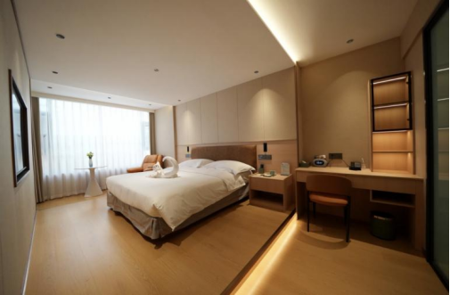 智能便利:增加智能客控系统,宾客通过床头控制面板或智能语音助手,即可实现空调温度调节、开关窗帘、切换电视节目、呼叫客房服务等功能,提升了入住的智能化体验。