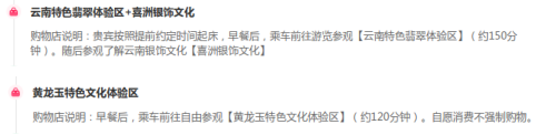 2026年4月21日,监测到标题为“特 惠 云南大理丽江6天5晚跟团游。赠洱海游船+歌舞表演”的旅游产品,涉及“云南特色翡翠体验区+喜洲银饰文化、黄龙玉特色文化体验区”两个购物点。