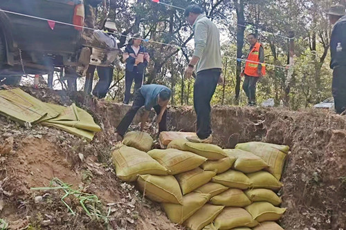 在永兴傣族乡这样的深山乡镇,面对临崖、易塌方路段密布的难题,干部群众同样因地制宜:悬崖急弯处,一袋袋砂土垒成坚实的防护墙;道路两侧,碗口粗的木桩深扎泥土,刷上红白漆后格外醒目;险要路段,红黄警示彩带迎风舒展,为过往车辆系上“安全带”。村民张显瑜说:“给木桩穿上花衣裳,路就有了方向。”这些朴素设施成本极低、安装快捷,却能在关键时刻挡住危险。当地还构建起“民警+乡村干部+两站两员+护林员+网格员”五位一体的监管体系,群众通过“随手拍”快速上报隐患,形成“早发现、早上报、早处置”的闭环管理。