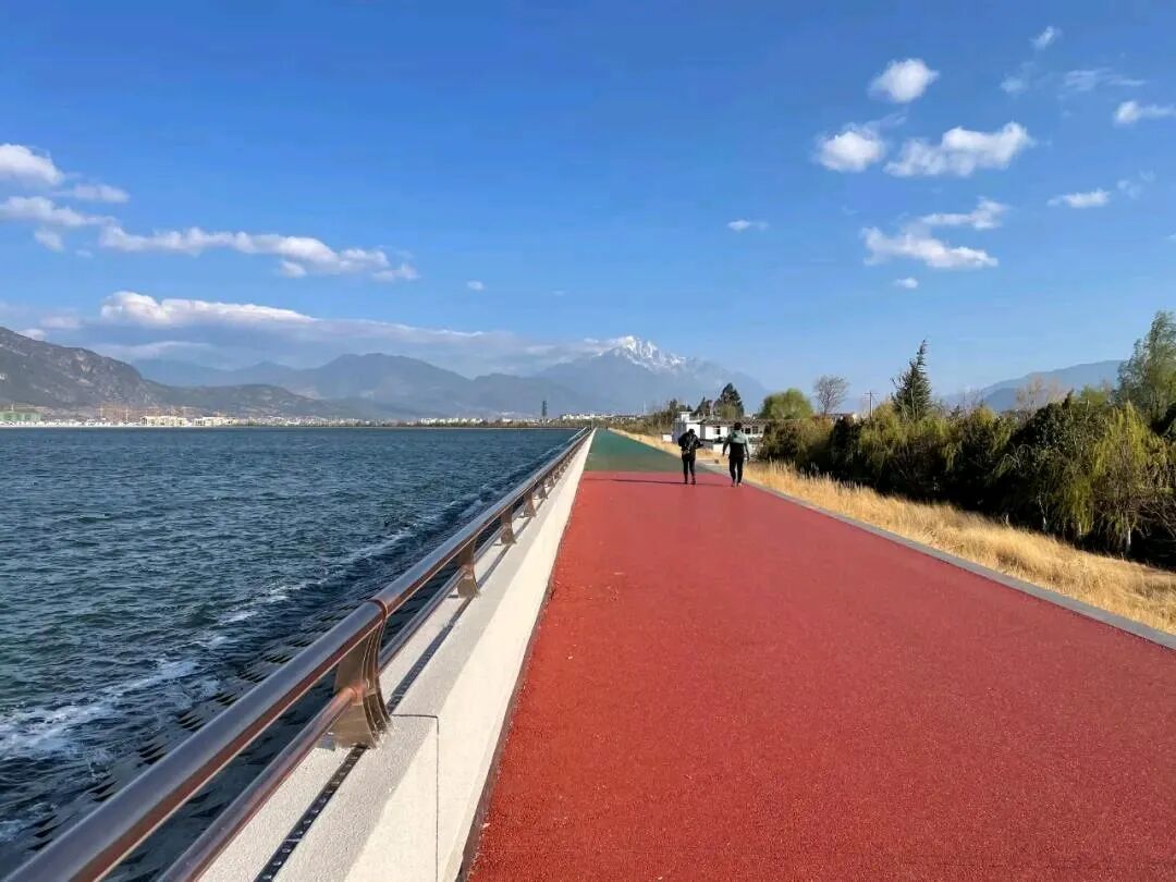 文笔海倒影雪山,意境如画,新建的观景步道平缓安全,适合散步、慢跑、观鸟,一边看湖景雪山,一边陪伴孩子慢行,成为春日亲子休闲的新晋打卡地。