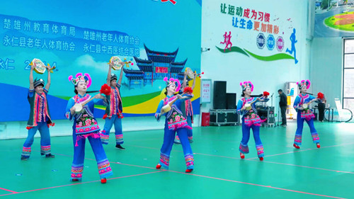比赛前,一场精彩纷呈的文艺演出为赛事暖心开场。彝族舞蹈《彝弦踏歌》以灵动舞步演绎彝族文化的浓郁韵味;太极功夫扇表演中,表演者们动作刚柔并济、行云流水,扇影翻飞间展现出沉稳大气的精气神;现代舞《一来永仁就高兴》则活力四射,用欢快节奏传递出永仁的热情与活力。