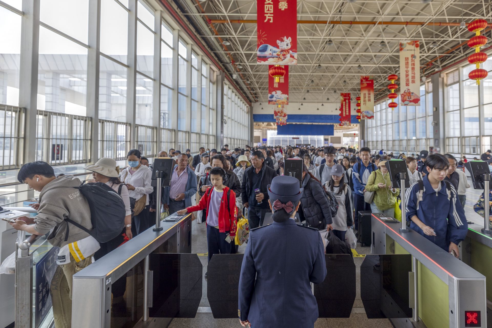 为确保旅客出行安全、有序、温馨,国铁昆明局推出一系列保障措施。各客运站持续巩固车站“畅通工程”,动态增开安检、验票通道,优化换乘流线。加强与公交、地铁等市政交通的联动,遇列车晚点等情况时,及时通过12306APP等渠道推送接驳信息。同时,全面优化重点旅客预约服务,保障老年及脱网人群线下服务,加强站车环境卫生整治,营造良好候乘环境。