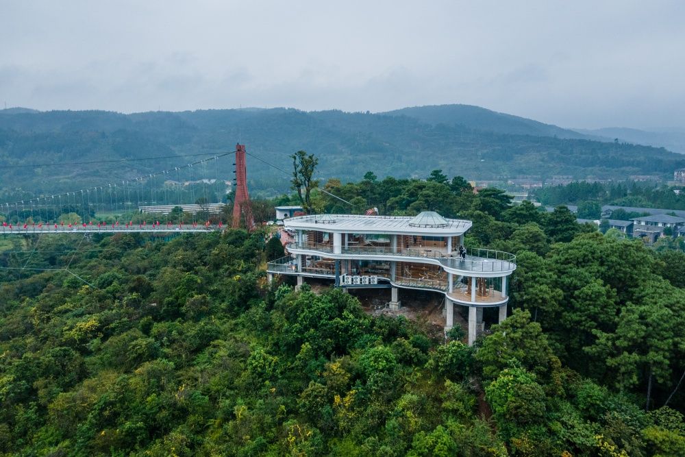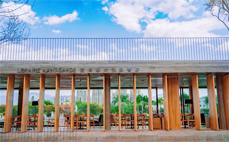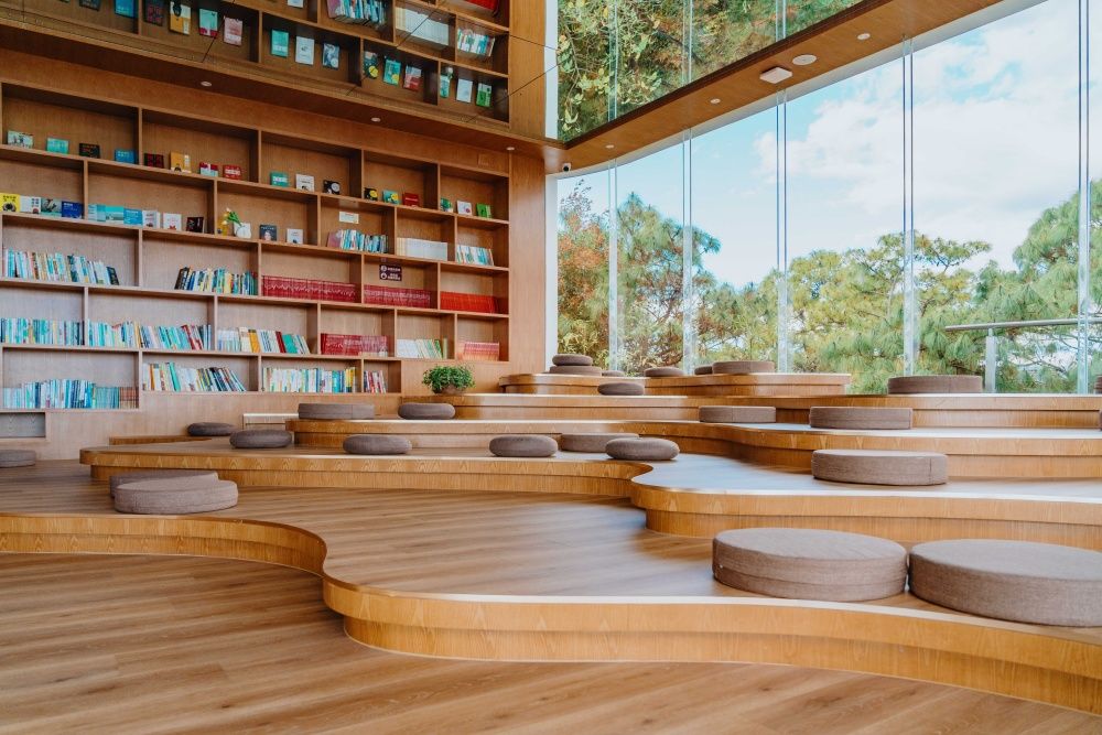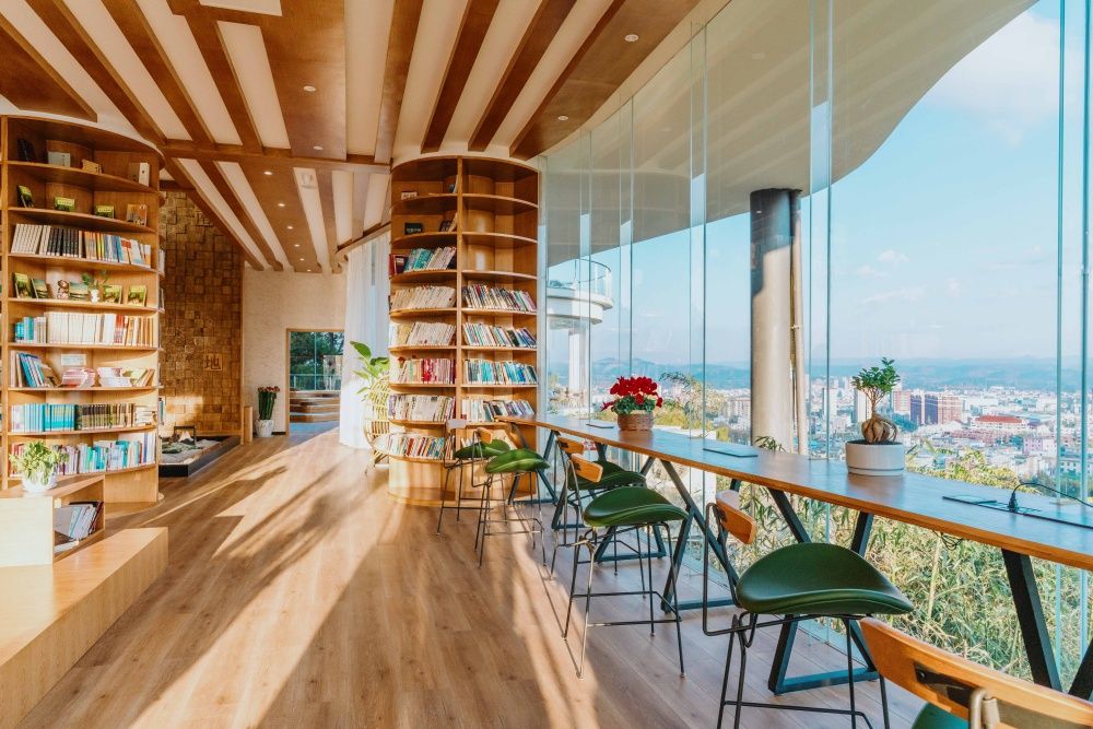 坐落在弥勒市髯翁森林公园,从空中俯瞰,书吧藏在茂密的树林间,仿佛遗世独立。