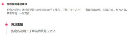 2026年4月24日,监测到标题为“云南旅游双飞包机票轻奢小团昆明大理丽江6天5晚跟团游”的旅游产品,涉及“民族民间非遗项目、黄龙玉馆”两个购物点。