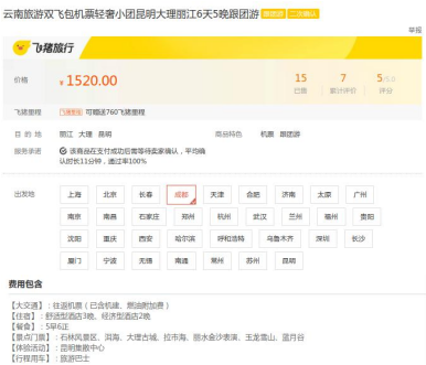 该旅游产品广告链接:云南旅游双飞包机票轻奢小团昆明大理丽江6天5晚跟团游