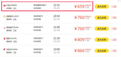 从行程看,从成都出发至昆明出发时查询的往返机票价格659元。