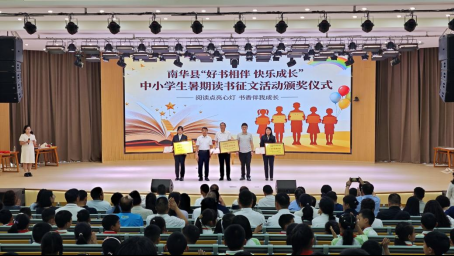 书香伴成长,阅读润青春。活动现场为暑期读书征文90名获奖学生、85名优秀教师、5所学校颁奖,中国邮政集团有限公司云南省南华县分公司现场捐赠了爱心图书,为众多青少年学子送上了丰厚的精神食粮,以实际行动助力书香校园建设。