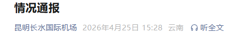 2026年4月25日00:20至02:56,昆明长水国际机场遭遇强对流天气,期间短时出现强雷暴及冰雹,停场航空器受雹击影响,部分航班取消或延误。昆明机场与各航空公司、运行保障单位立即启动应急处置。
