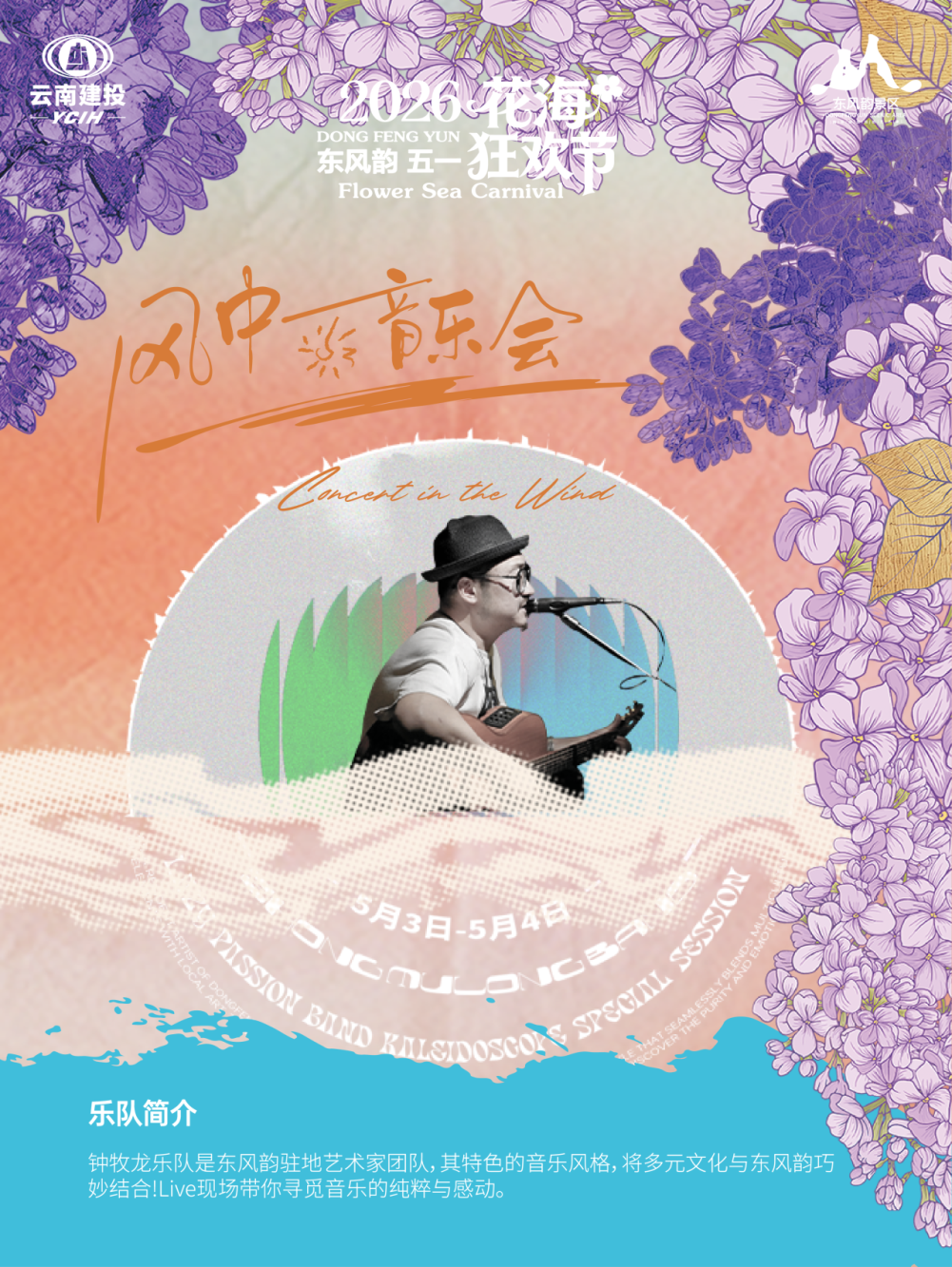 5月3日至5月4日13:00—13:30,15:00—15:30,17:00—17:30(钟牧龙乐队)