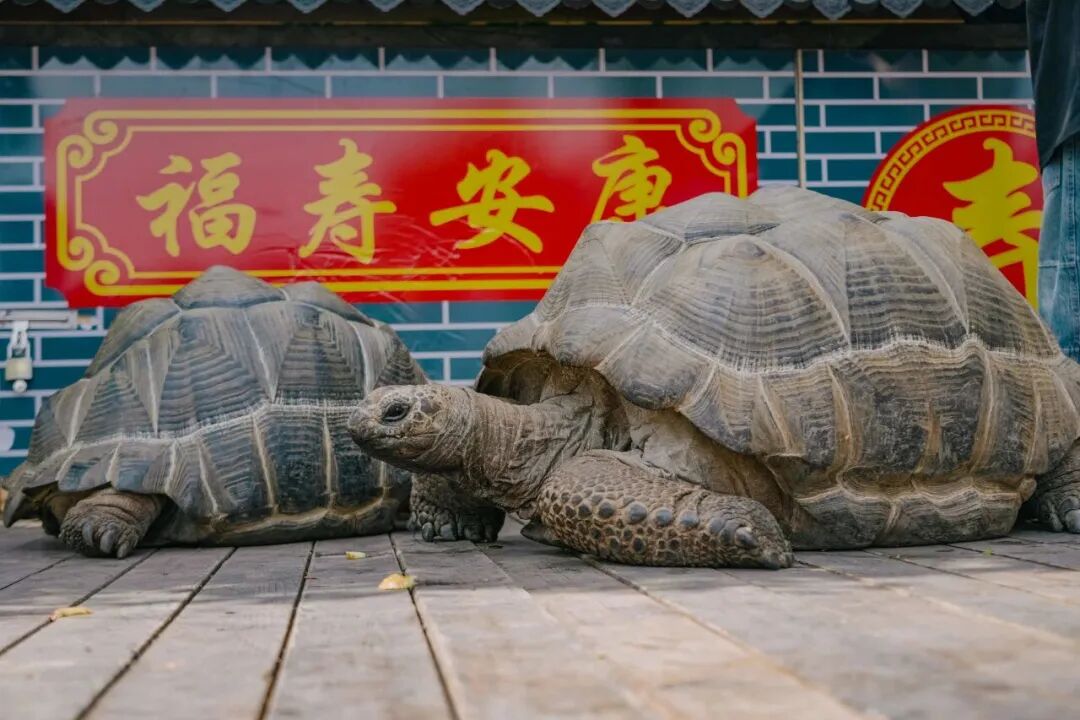 和百年灵龟互动,轻轻投食,看它慢悠悠地爬过来。拍照打卡,据说能吸纳福气哦!