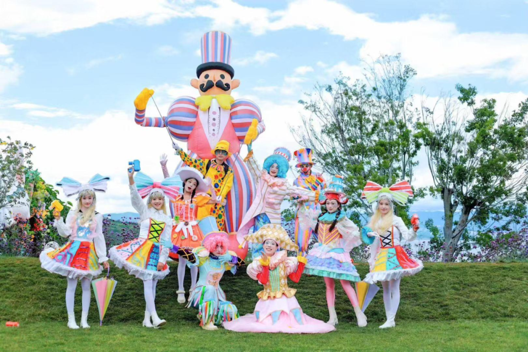 踏入景区第一秒,盛装高跷“花中精灵”就热情迎上来,递上小礼品——快乐从入园就开始啦!