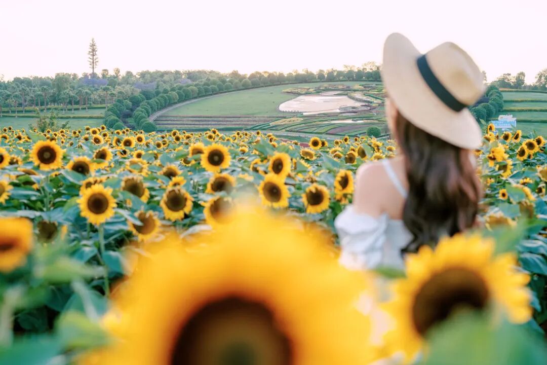 躺在花海间的草坪上,夕阳把天空染成橘红色,耳边是现场乐队的悠扬旋律。这一刻,风是香的,时间是慢的,整个人都被治愈了。