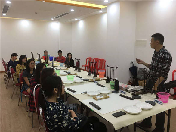 中国书法绘画、面塑和茶艺培训班今日在仰光中国文化中心开班,该培训是继6月中心举办画展后首个为公众开放的培训课程。