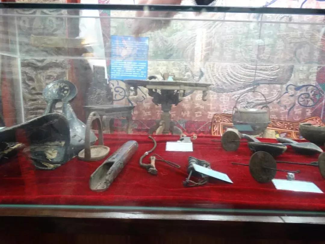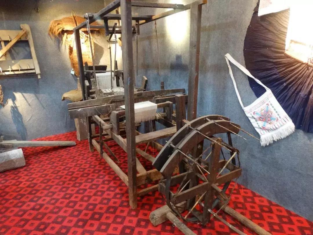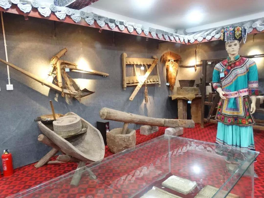 此外,屋子里还摆放了两个民族的纺线机、织布机、石锥、犁、弩等传统生活、农耕用具,这些用具中年代最久远的已有150多年历史,其中一台纺线机如今仍可正常使用。