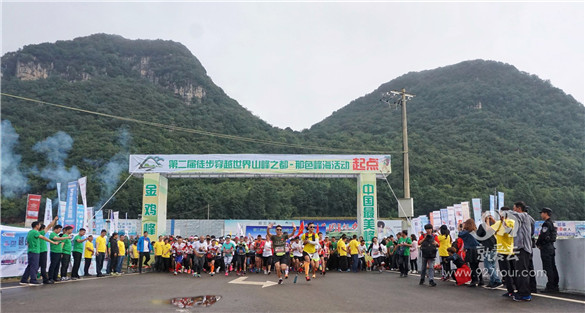 徒步活动分为挑战组和体验组。挑战组路线以金鸡峰丛景区停车场为起点,沿景区观光道进行,在老母鸡脚大补懂村结束,全程46 公里。这条路线沿线的少数民族村庄以布依族和彝族聚居为主,宁静祥和中藏着多姿多彩的民族风情。体验组路线分两段,全程22 公里,沿途自然风光绮丽,伴随有少数民族村落,徒步过程仿佛穿越一条古朴的生态走廊。